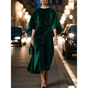 Dame Maxikjole A Linje Kjole Elegant Formelt Bryllupsgæst Cocktailparty Regulær Kortærmet V-hals Salvie Grøn Lyserød Navyblå Mørkegrøn Sommer