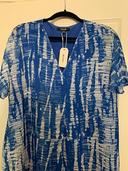 Dette er en meget smuk kjole. Farverne er en livlig blå og hvid. Kjolen er behagelig og falder godt!