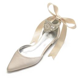 Dame Bryllup Sko Pæne sko Plus størrelse Hvide sko Bryllup Fest Ensfarvet Bryllupslejligheder Brudesko Brudepige sko Sommer Bjergkrystal Krystal Imitationsperler Flade hæle Spidstå Elegant Luksuriøs