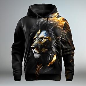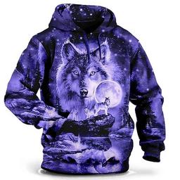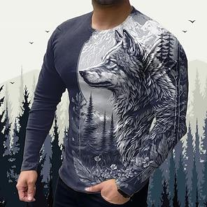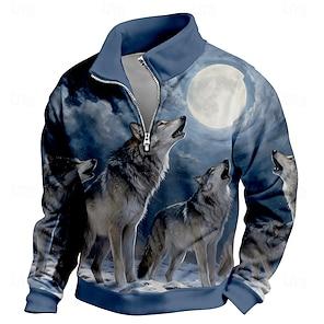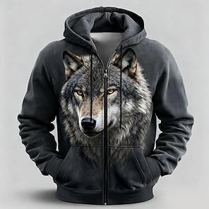 Herre Ulv 3D-udskrivning Grafiske tryk Hattetrøje Pullover hættetrøje sweatshirt Hættetrøjer Sweatshirt Mode Gade Basale Bekvem Langærmet Hætte Ferierejse Arbejde Dagligdagstøj Afslappet / Hverdag
