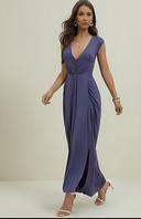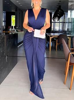 Dame Sort kjole Festkjole Gæstekjole til bryllup Krøllede Folder Åben ryg V-hals Uden ærmer Formel Vinter kjole Navyblå Forår Vinter