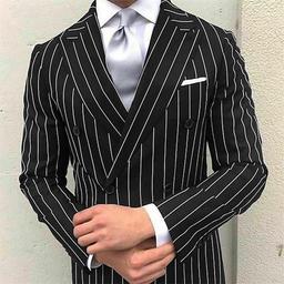 Mænds Bryllup Fest Jakkesæt Spidsrevers Sort Bordeaux Mode Forretning Stribet Plus størrelse 2 dele sæt Dobbeltradet seks knapper
