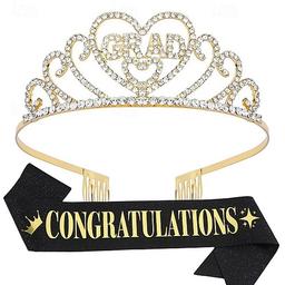 Abschlusskrone und Stola-Schärpen-Set, Zubehör-Set für die Abschlussfeier, Glückwunsch-Schärpe aus glitzerndem Stoff, Kopfschmuck aus Legierung, Tiara und Schärpen-Set für die Abschlussfeier
