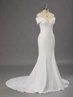 Halle Hochzeitskleider A-Linie V-Ausschnitt Ärmellos Bodenlänge Gericht Zug Satin Hochzeitskleider mit Schärpe Band Gerüschte