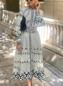 Damen Midikleid Corsagenkleider A Linie Kleid Kleid mit Puffärmeln Urlaub Halbformelle Kleider Formal Urlaub Arbeit Regular Fit Graphic Kurzarm Stehkragen Weiß Sommer