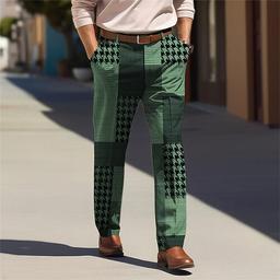 Hahnentritt-Business-Casual-Herren-Business-Anzughose mit 3D-Druck, flache Vorderseite, gerades Bein, entspannte Passform, Polyester-Hose mit mittlerer Taille, Outdoor-Streetwear für die Arbeit,