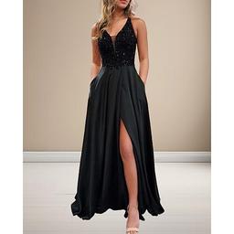 A-Linie Abendkleid Glänzendes Kleid Ball Geburtstag Sweep Brush Zug Ärmellos V-Ausschnitt Pailletten Kreuzrücken mit Glitzer Perlen Pailletten