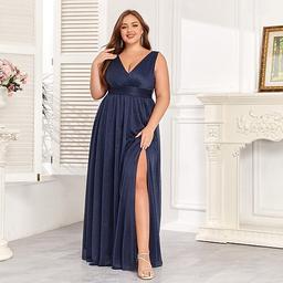 A-Linie Hochzeitsgäste Kleider Elegantes Kleid Hochzeits Gast Gartenparty Bodenlänge Ärmellos V-Ausschnitt Brautjungfernkleid Chiffon V Rücken mit Schlitz