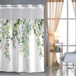 Duschvorhang ohne Haken 180cm hoch mit druckfreiem Polyesterstoff-Einlage blatt durchsichtiger Oberseite wasserdichter Doppel-Lagen Badewannenvorhang mit Pflanzenblattmuster