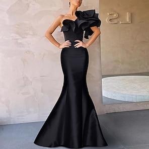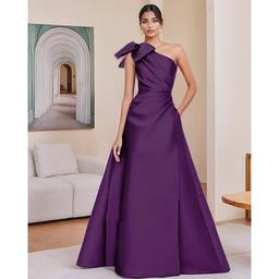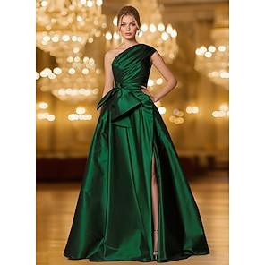 A-Linie Bodenlang Abendkleid Ballkleid Festliche Kleidung Elegant Party Ärmellos Ein-Schulter Abendgesellschaft Gartenparty Satin mit Schleife(n) Falten