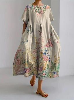 Damen Maxikleid Freizeitkleid Lässig Urlaub Lässiger Schnitt Ombre Blumen Grafik Dreiviertelarm Rundhalsausschnitt Hellgelb Magenta Perle Hellgrün Frühling Herbst Winter