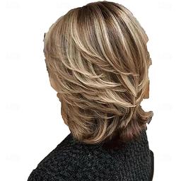 kurze Ombre-Highlights, braun, gemischt, blond, geschichtete Perücke, Pony, Bob für Frauen, synthetischer, kurzer, blonder Pixie-Schnitt
