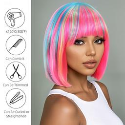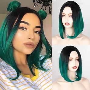 Synthetische Perücken Kinky Glatt Natürlich glatt Stufenschnitt Gerader Pony Maschinell hergestellt Perücke 14 Zoll A1 Synthetische Haare Damen Klassisch Bequem Ombre-Haar Gemischte Farbe