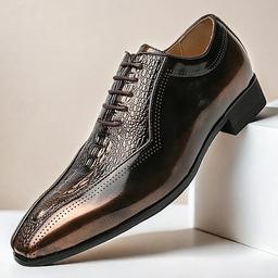 Herren-Oxford-Schuhe in Metallic-Bronze mit Krokodilmuster und perforierten Details – elegantes, formelles Schuhwerk für Hochzeiten, Partys und geschäftliche Veranstaltungen
