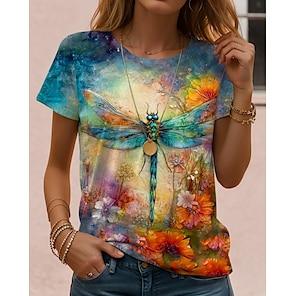 Damen T Shirt Ombre Lässig Kurzarm Rundhals Normale Oberteile Täglich Druck Purpur Beige Sommer