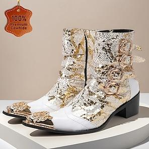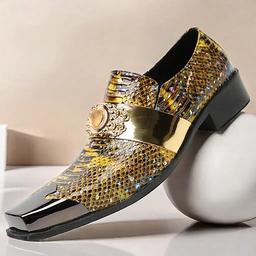 Herren-Slipper aus Leder mit Schlangenmuster und goldener Spitze und Verzierung aus Goldmetall – hochwertiges Rindsleder, formelle Partyschuhe