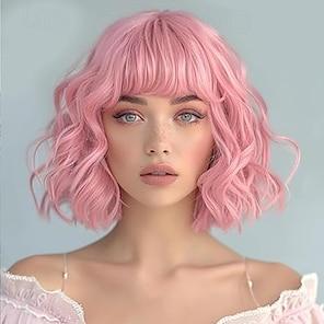Kurze Perücken für Frauen, gewellte Perücke mit Pony, Bob-Perücke, Kunsthaar, Wasserwelle, mittellange, bunte Perücken für den Alltag und Partys