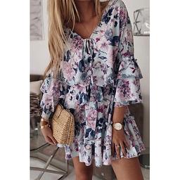 Damen Minikleid Druckkleid Schößchen Kleider Mode Täglich Outdoor Ferien Normale Passform Blume Dreiviertelarm V Ausschnitt Blau Rosa Pudriges Rosa Sommer