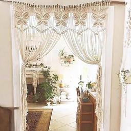 Boho Tür Vorhänge Makramee Valance Wandbehang Zuhause Makramee Gewebtes Wandteppich Schmetterlingsvorhang Dekoration Raumteiler Kopfteil Hochzeits-Hintergrund 35" B x79" H