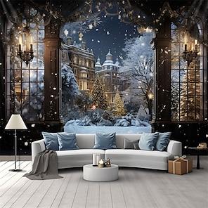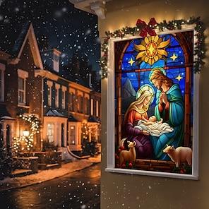 Weihnachtsdekoration für Fenster, Stoffvorhang mit Weihnachtskrippe, Buntglas, Filmplakat, Fenster- und Türbespannung, Dekoration für das Weihnachtshaus, Fensteraufkleber für drinnen und draußen