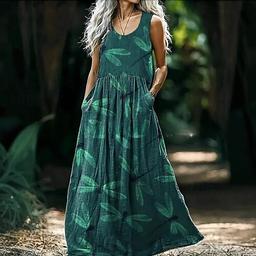 Damen Langes Kleid Maxikleid Vintage-Kleid Boho-Kleid Druckkleid Westernkleid Vintage Mode Klassisch Outdoor Urlaub Ferien Normale Passform Blume Ärmellos Rundhalsausschnitt Blau Orange Dunkelgray