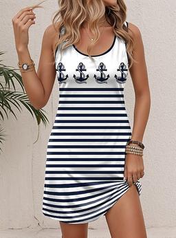 Damen Mini Kleid A-Linien Kleid Sundress Trägerkleid Sommerkleid Urlaub Tropisch Lässig Urlaub Täglich Strand Lockere Passform Grafik Streifen Ärmellos Rundhalsausschnitt Weiß Marineblau Blau Sommer