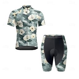 Herren Radtrikot mit Radhose fahrradbekleidung Kurzarm MTB Mountain Rennrad Schwarz Blau Kaki Blumen Pflanzen Fahhrad Spandex Sport Blumen Pflanzen Bekleidung