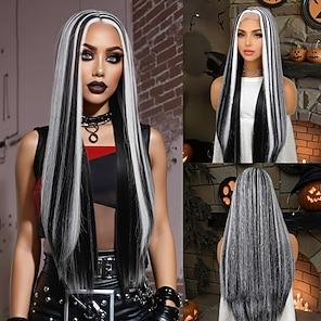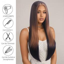 Synthetische Perücken Kinky Glatt Natürlich glatt Stufenschnitt Tiefer Scheitel Maschinell hergestellt Perücke 30 Zoll A1 Synthetische Haare Damen Klassisch Bequem Ombre-Haar Gemischte Farbe