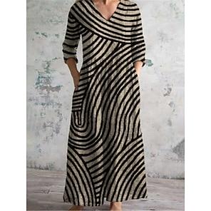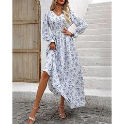 Damen Langes Kleid Maxikleid Freizeitkleid Schwingkleid Druckkleid Mode Klassisch Modern Puffärmel Outdoor Urlaub Ferien Normale Passform Blume Langarm V Ausschnitt Schwarz Weiß Grün Sommer