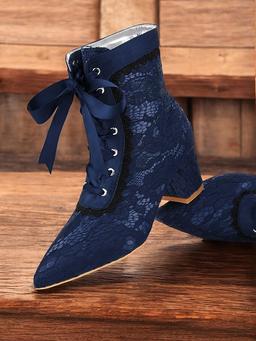 Grüne viktorianische Schnürstiefeletten für Damen mit floraler Spitzenauflage und Schleife – Vintage-Stil für besondere Anlässe
