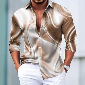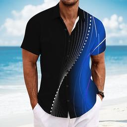 Herren Geometrisch Farbverlauf Abstrakte Kunst Hemd Sommerhemd Knopfhemd Kurzarm Modisch lässig Outdoor Urlaub Alltagskleidung Sommer Umlegekragen 3D-Druck Leinenähnliches Hemd Rote Blau Grün Grau