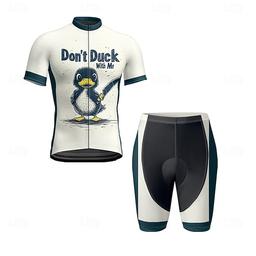 Herren Radtrikot mit Shorts Kurzarm Mountainbike MTB Straßenradsport Schwarz Weiß Cartoon Fahhrad Atmungsaktiv Spandex Sport Bekleidung