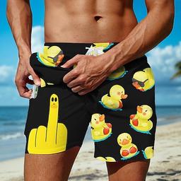 Herren Kleine gelbe Ente Lustig Gefütterte Shorts 2 in 1 Badeshorts Badeshorts Mittlere Taille Hawaiianisch Ferien Strandbekleidung Seitentaschen Mit Kompressionsfutter Elastischer Kordelzug in der