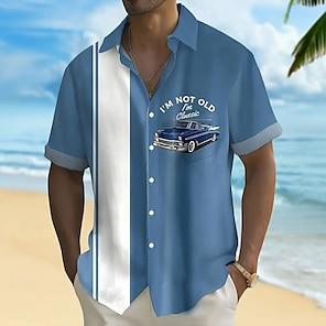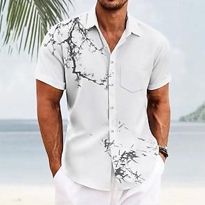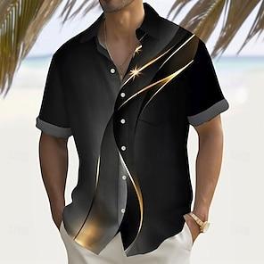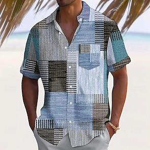 Herren Geometrisch Abstrakte Kunst Hemd Sommerhemd Knopfhemd Kurzarm Modisch lässig Urlaub Sports Outdoor Strandbekleidung Sommer Frühling Umlegekragen Hemden mit Kragen Eine Tasche vorne Grün