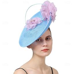 Eleganter Luxuriöser Feder Leinen Viskose Kentucky Hut Fascinator Kopfbedeckung mit Feder Blumen 1PC Melbourne Cup Hochzeit Pferderennen Damen Tag Kopfbedeckung Kleid Renntag Kleid