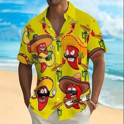 Herren Kaktus Lustig Pfeffer Hemd Sommer Hawaiihemd Knopfhemd Kurzarm Hawaiianisch Urlaub Ferien Strandbekleidung Sommer Frühling Umlegekragen 3D-Druck Hemden mit Kragen Eine Tasche vorne Gelb