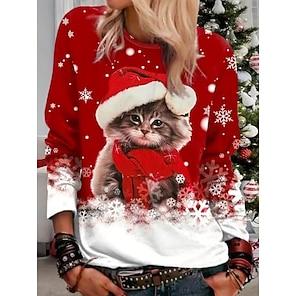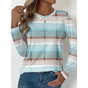 Frauen T-Shirt Rundhals Langarm Tunika Tier Grafik Freizeit Regelmäßige Oberteile Täglicher Druck Blau Frühling Herbst