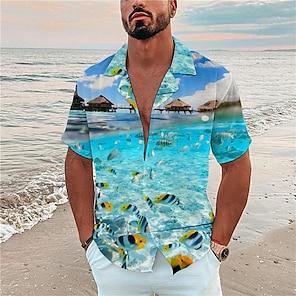 Herren Hai Schildkröten Meeresbewohner Hemd Leinenhemd Sommer Hawaiihemd Langarm Lässig Urlaub Ferien Strandbekleidung Sommer Frühling Stehkragen 3D-Druck Button-Down Blau 1# Blau