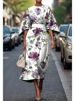 Damen Midikleid Etui-Kleid Lässig Formell Halbformelle Kleider Büro Täglich Normale Passform Blumen Grafik Dreiviertelarm Rundhalsausschnitt Blau Purpur Leicht Blau Sommer Frühling