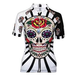 Damen Radtrikot Gemustert Zuckerschädel Lustig Fahhrad Trikot mit 3 Gesäßtaschen Mountainbike MTB Straßenradsport Schnelltrocknend Anatomisches Design Frontreißverschluss Rückentasche Sport Schwarz