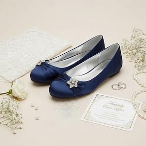 Damen Hochzeitsschuhe Damenschuhe Valentinstagsgeschenke Party Hochzeitsschuhe Flach Brautschuhe Brautjungfernschuhe Strass Bandbindung Flacher Absatz Runde Zehe Basic Ballerina Süß Satin Schwarz
