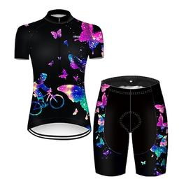 21Grams Damen Radtrikot mit Radhose fahrradbekleidung set Kurzarm MTB Mountain Rennrad Grün Gelb Blau Schmetterling Farbverlauf 3D Fahhrad Sportkleidung 3D-Pad Atmungsaktiv UV-resistant Rasche