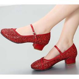 Rote Glitzer-Mary-Jane-Tanzschuhe für Damen mit niedrigem Absatz – funkelnde Party-Ballsaalschuhe für besondere Anlässe