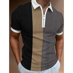 Herren Poloshirts Reißverschluss-Polo Urlaub Lässig Umlegekragen Viertelreißverschluss Kurzarm Mode Lässig Farbblock Reißverschluss Druck Sommer Frühling Normale Passform Blau Braun Grau Poloshirts