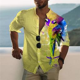Herren Grafik Tiermotiv Hawaiian Hemd Sommer Hawaiihemd Alohahemd Kurzarm Hemd Stehkragen Mode Designer Lässig Outdoor Urlaub Lässig Gelb Blau Purpur Druck S M L