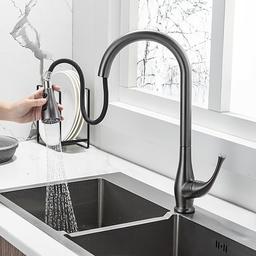 Küchenarmatur mit ausziehbarer Brause, Einhand-Einloch-Nickel gebürstet / galvanisch ausziehbar / herunterziehbar / Standard-Auslauf / hoch / High-Arc-Centerset