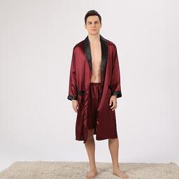 Herren Übergröße Morgenmantel Seidenrobe Kimono aus Seide Sets 2 Stück Wellen Einfach Komfort Heim Täglich Kunstseide Polyester Geschenk Kargen Langarm Robe Top Kurze Hosen Tasche Einstellbar Gürtel