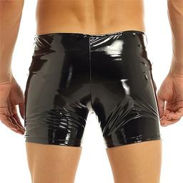 Herren Lässige Shorts Kunstleder-Shorts Einfarbig Komfort Weich Heim Casual Ausgehkleidung Sexy Nasses Aussehen Schwarz