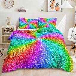 3D-Bettwäsche mit Regenbogendruck, Bettbezug, Bettwäsche-Sets, Bettdeckenbezug mit 1 bedrucktem Bettbezug oder Bettdecke, 1 Bettlaken, 2 Kissenbezügen für Doppel-/Queen-/King-Size-Betten für den