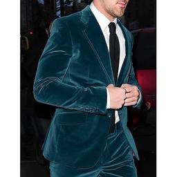 Herren Party Anzüge Fallendes Revers Gekerbtes Revers Blau Grün Schwarz Mode Lässig Einfarbig Schmale Passform 2-teilig Einreihige Zwei-Knopf-Jacke